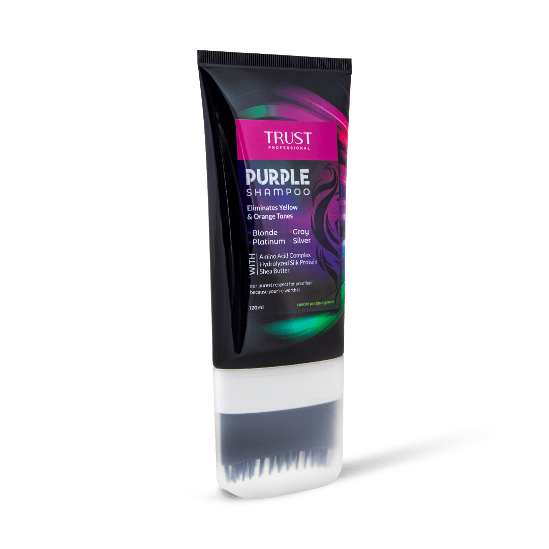 هفته ای یکبار شامپو بنفش تراست را بر روی موهای خیس ماساژ داده و اجازه دهید تا پنج دقیقه آغشته بماند سپس با آب بشوئید. پیشنهاد می گردد هنگام مصرف از دستکش یکبار مصرف استفاده شود.